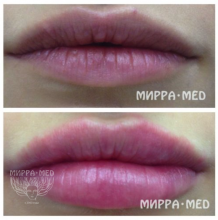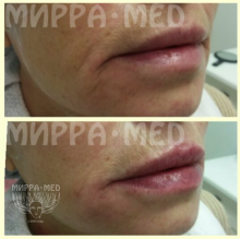 Коррекция губоподбородочных морщин, поднятие уголков губ, придание губам контура и формы препаратом на основе