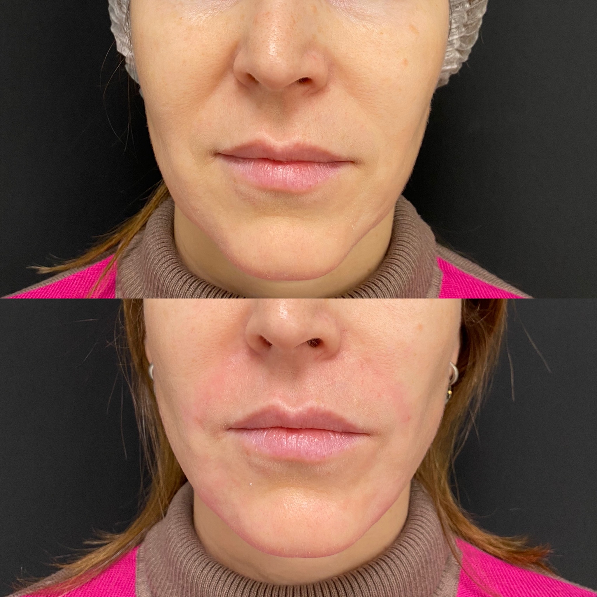 Векторный лифтинг препаратом Radiesse, коррекция малярных мешков, контурна пластика овала лица. Подбородка